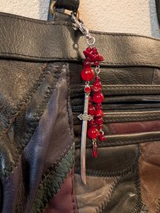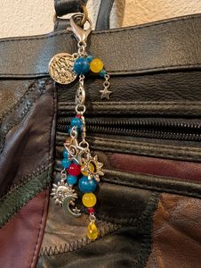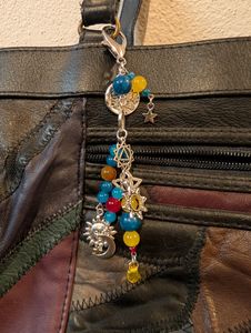 Mushroom and green quartz and glass bead dangles and silver charms bag or keychain charm with large silver lobster clasp