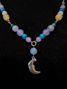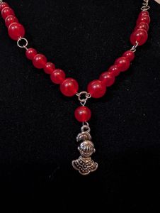 Glass lamp work bead and pewter butterfly charm necklace