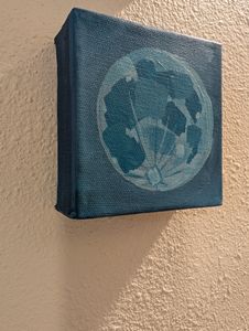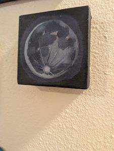 Grey Crescent moon painting from my mini moon series, small dent in upper left of canvas